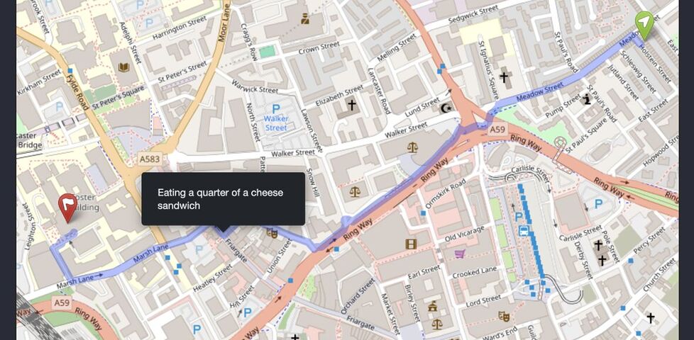 In the kind of dream that only happens when I'm ill, I invented an app that would track both your location and your food consumption, and report to social media your journey progress as a proportion of your remaining meal. Read more →