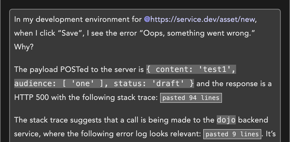 The other week, a coding LLM helped me... without me ever submitting a single prompt to it. I just typed into it all the component parts of my problem, and in doing so the solution revealed itself to me. It's rubberducking... silent AI edition! Read more →
