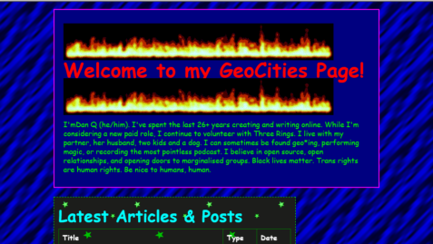 I'm Dan Q (he/him). I've spent the last 26+ years creating and writing online.
