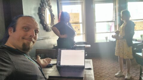 I work as a software engineer, and I volunteer with Three Rings. I live with my partner, her husband, two kids and a dog. I can sometimes be found geo*ing, performing magic, or recording the most pointless podcast.