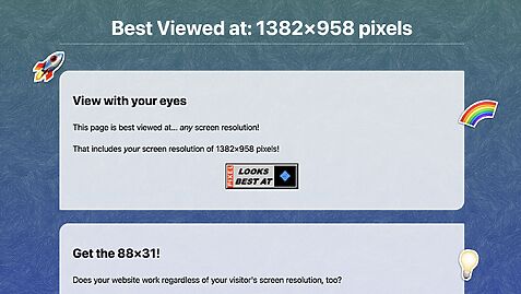 As the latest in a series of stupid things I've done on or for the Web, I've made a website that dynamically generates 'best viewed at' buttons... for exactly the Web visitor's current screen resolution... Read more →