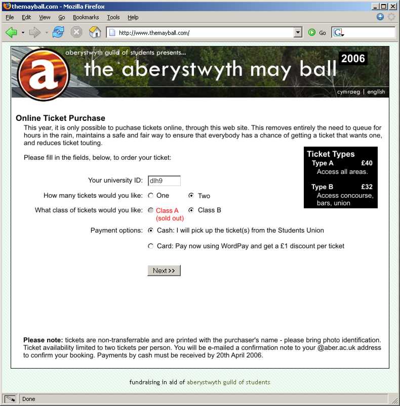 Here’s how it should be done. All the tickets should be sold online, by the Students Union. If you want to buy tickets, you connect to their web site and fill in the following details: