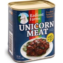 Fake meat is mostly good as a compromise when a vegetarian lives with someone who doesn’t eat vegetables. But I’d be all for some unicorn steaks! And why stop there? Why not have people steaks for those days when you have cannabilistic urges? (we’ve all had those right….?)
