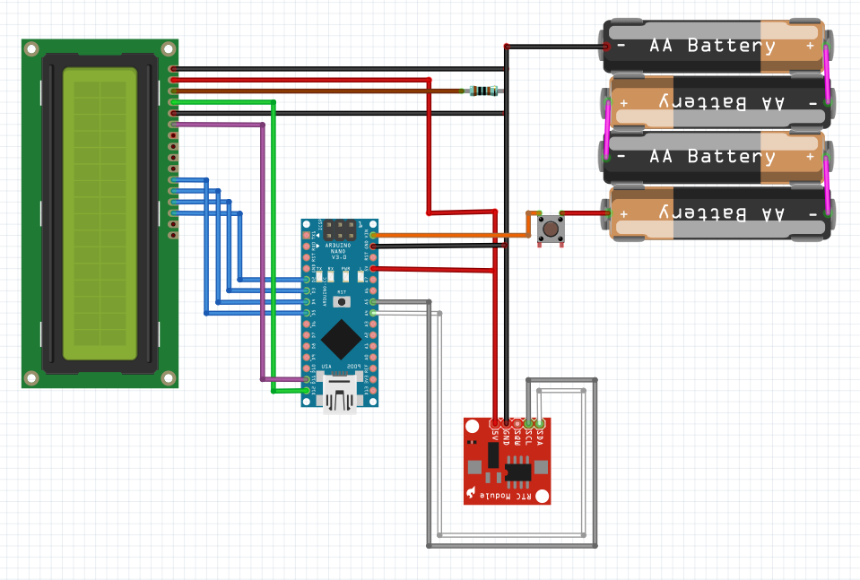 How does this magic work? Well, it’s reasonably simple, so long as you’re familiar with the conceptual workings of time-based two-factor tokens and the predictability of computer random number generators. I’m offering the source code and support in construction to anybody who successfully finds the cache, in order to try to inspire a new generation of digital caches in Oxfordshire (and further afield!). But the essence of it is an ATmega328 chip acting like an Arduino Nano, hooked up to a clock chip (powered by a long-life lithium “watch battery”) that keeps it in sync with its partner, and – while a switch is pushed – fully-powered by a stack of AA batteries (which provide enough power to do the maths and light up the screen).