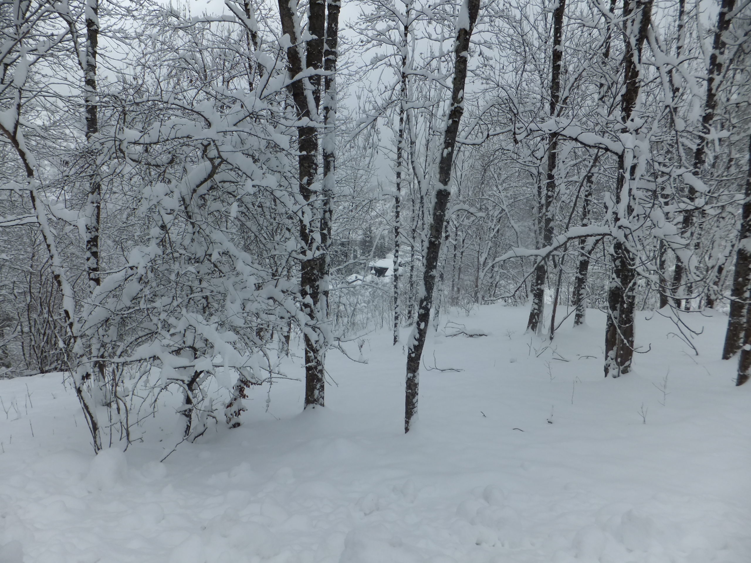 Walking through knee-deep snow is tiring, even downhill! Beautiful, though!