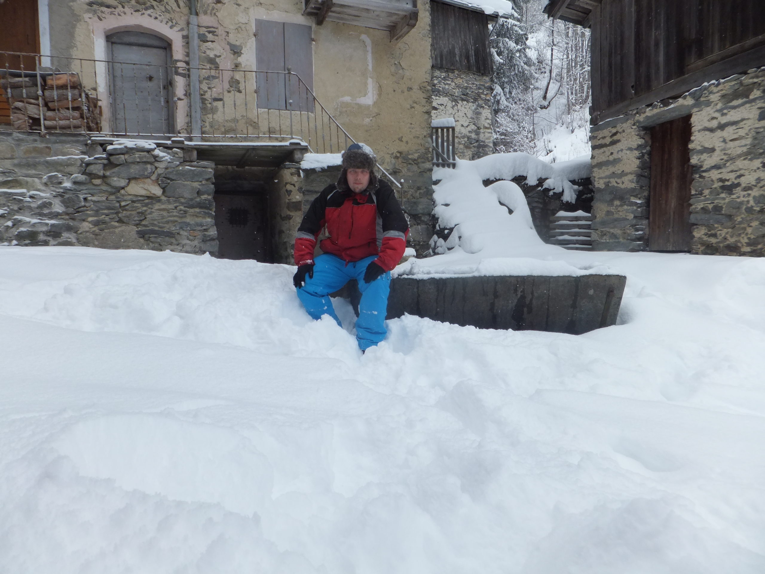 The snow was a lot less-deep in Villaflou itself, and had clearly been stamped down by locals moving around.