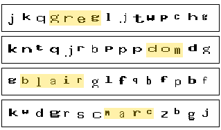 more-often than would be expected by chance. If you’re a fan of wordsearches, take a look at the composite screenshot above: can you find a person’s name in each of the four lines?