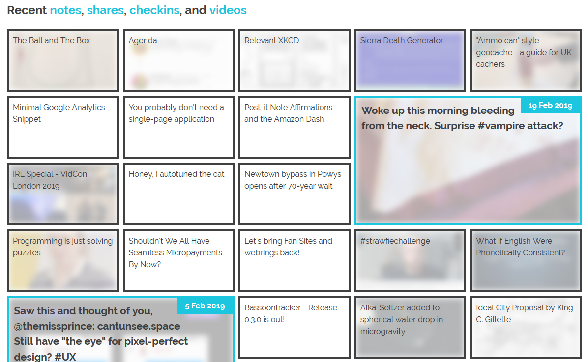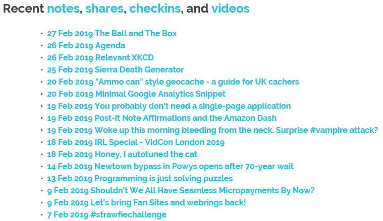 I’ve been trying to make better use of my blog as a vehicle for experimenting with web technologies, as I used to with personal sites back in the 1990s and early 2000s; to see a vanity site like this one as a living playground rather than something that – like most of the sites I’m paid to work on – something whose design is, for the most part, static for long periods of time.