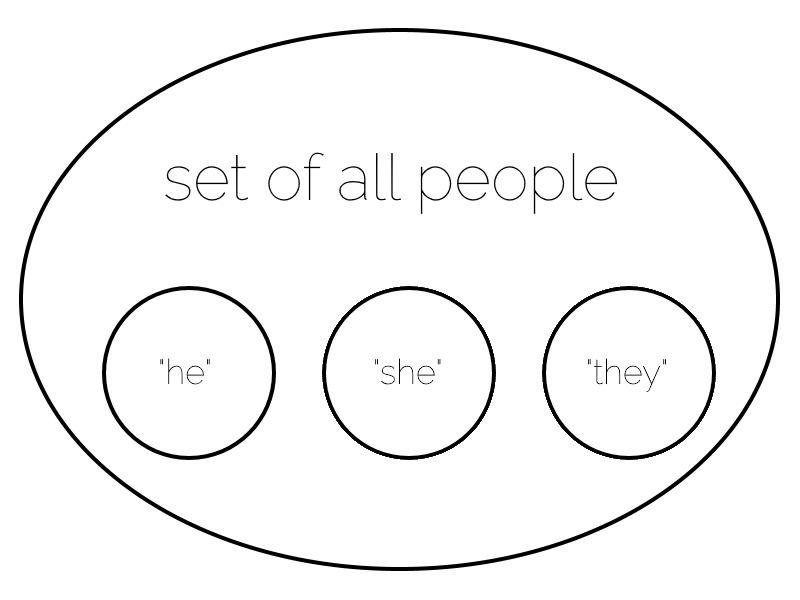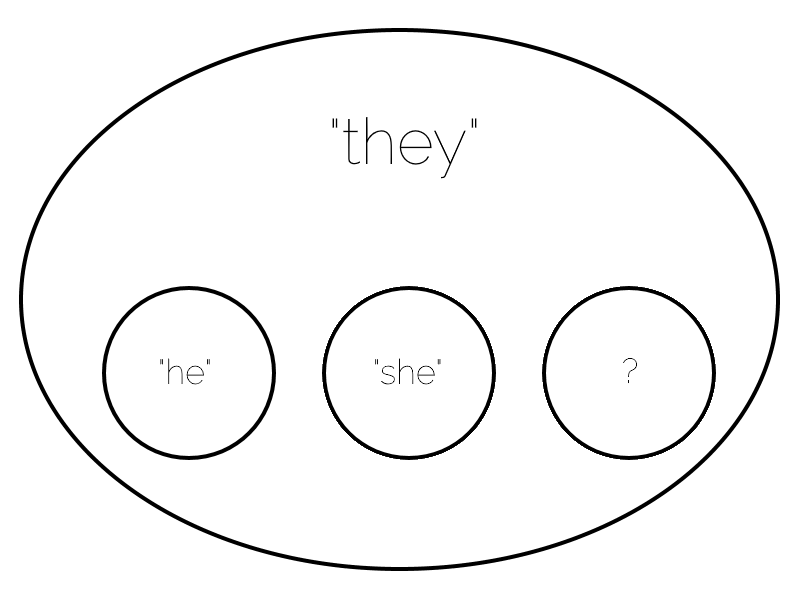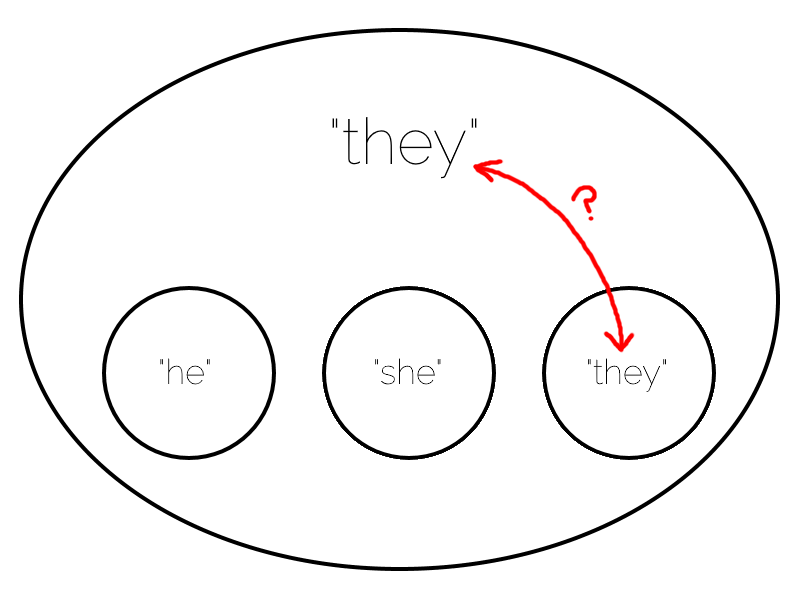 That said: I don’t feel able to suggest which pronoun(s) ought to replace the question mark in the diagram above. But for the first time, I’m not convinced that it ought to be “they”.