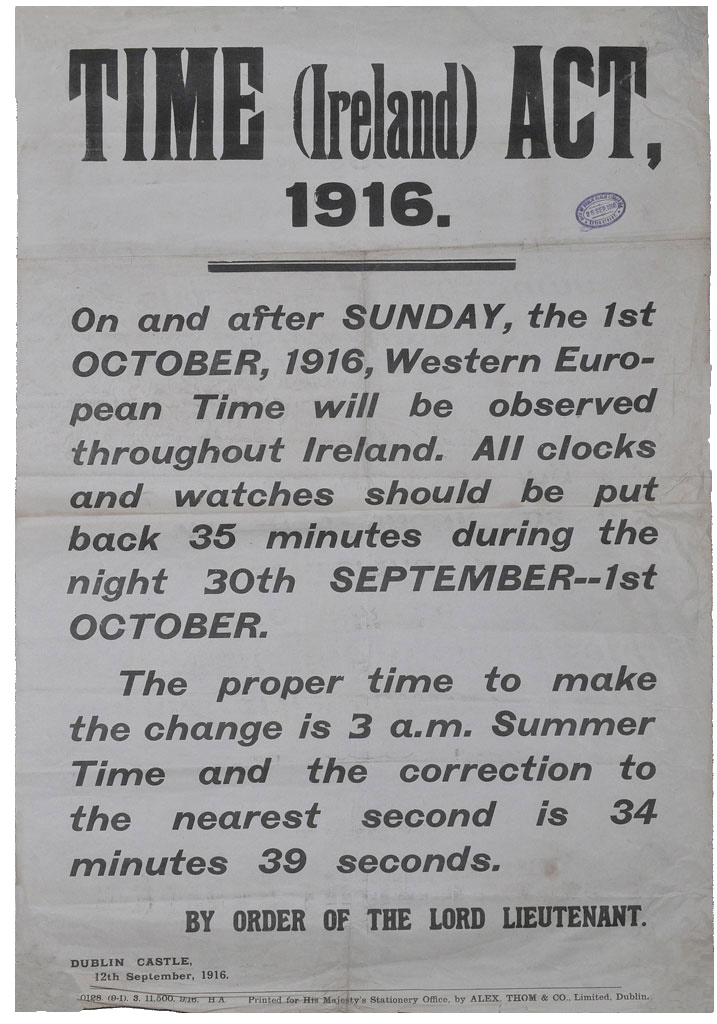 That’s all fine in peacetime, but by the First World War and especially following the Easter Rising, the British government decided that it was getting too tricky for their telegraph operators (many of whom operated out of Ireland, which provided an important junction for transatlantic traffic) to be on a different time to London.