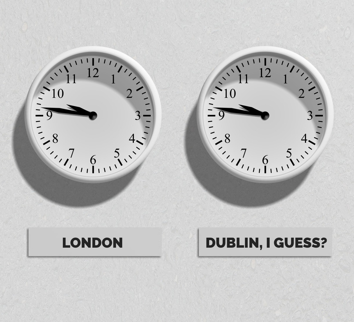You might rightly be thinking: so what! Having a standard time of UTC+0 and going forward for the Summer (like the UK), is functionally-equivalent to having a standard time of UTC+1 and going backwards in the Winter, like Ireland, right? It’s certainly true that, at any given moment, a clock in London and a clock in Dublin should show the same time. So why would anybody care?