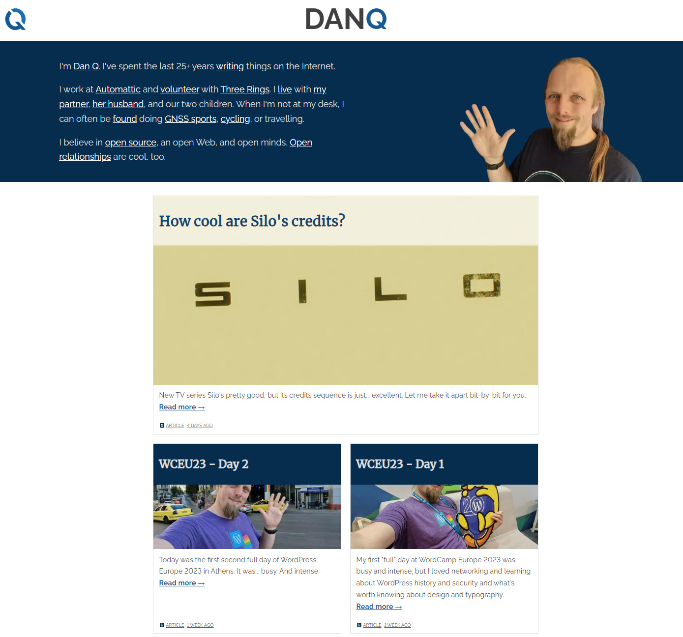 I’ve soft-launched a bit of a redesign on DanQ.me: the old one was getting a little stale, and I wanted space to try out some new ideas!