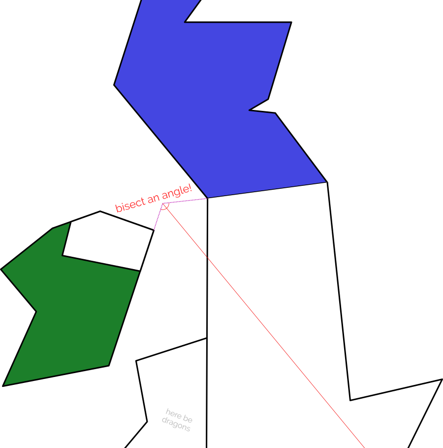 If the England-facing Irish and Scottish borders were completely straight, one could simply extend the borders until they meet, bisect the angle, and we’d be done.