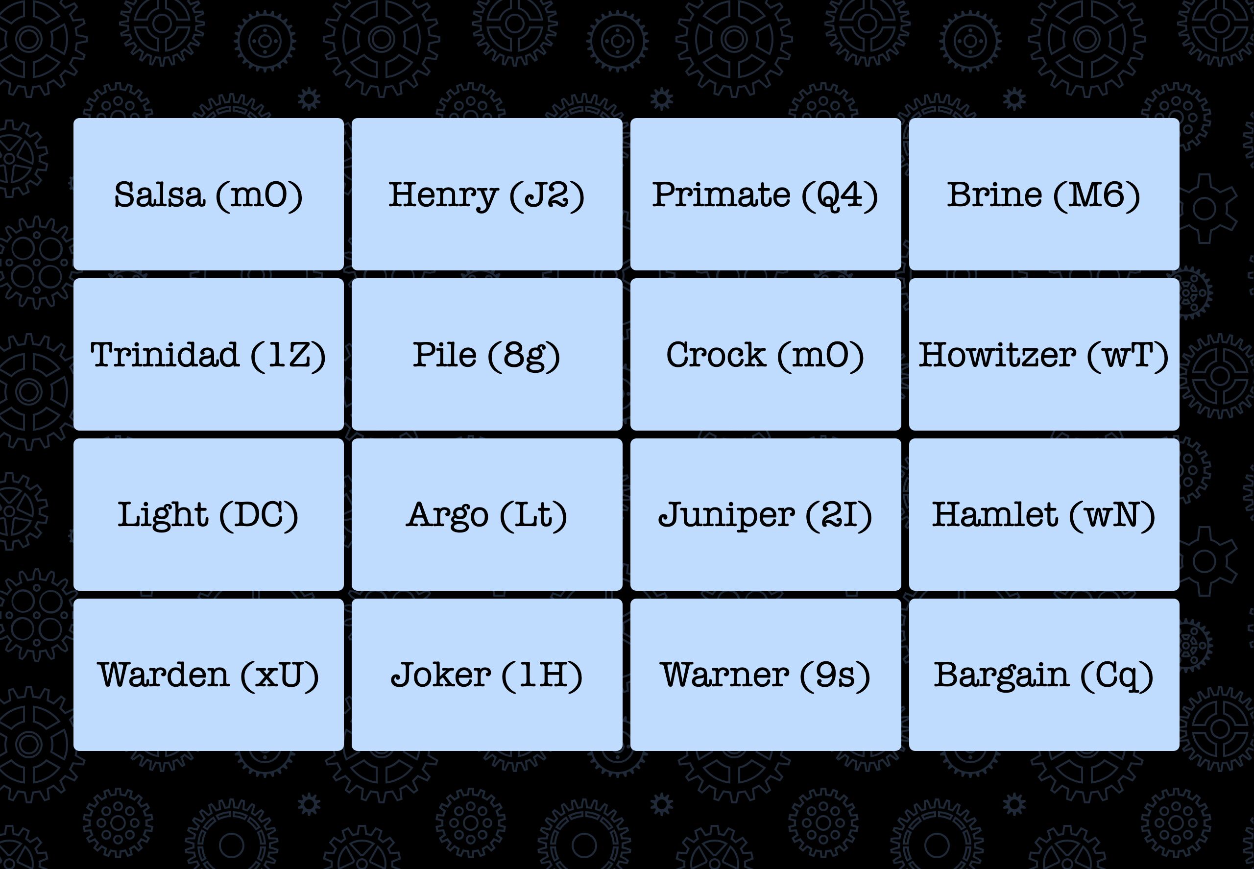- It creates an array containing the 43,680 possible permutations of 4 from the 16 words.