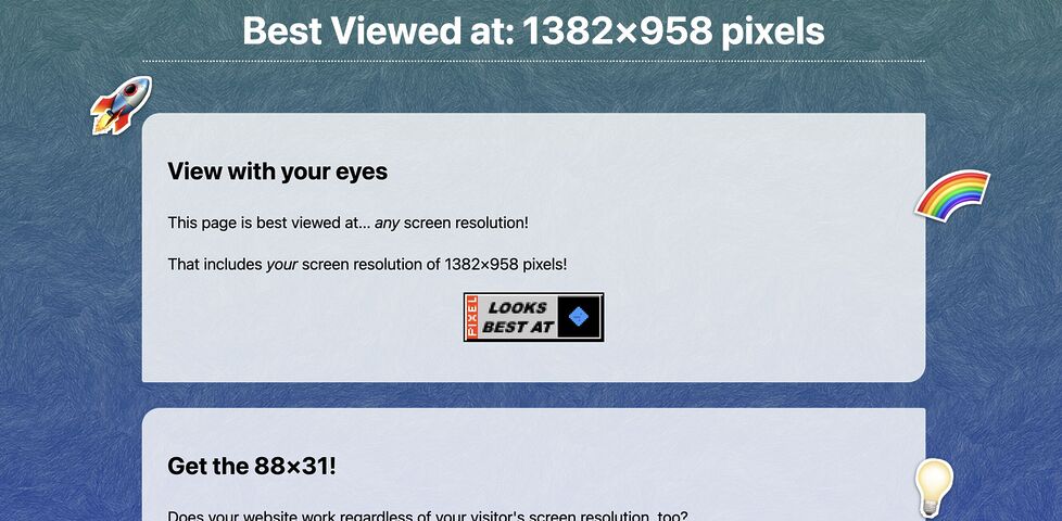 As the latest in a series of stupid things I've done on or for the Web, I've made a website that dynamically generates 'best viewed at' buttons... for exactly the Web visitor's current screen resolution... Read more →