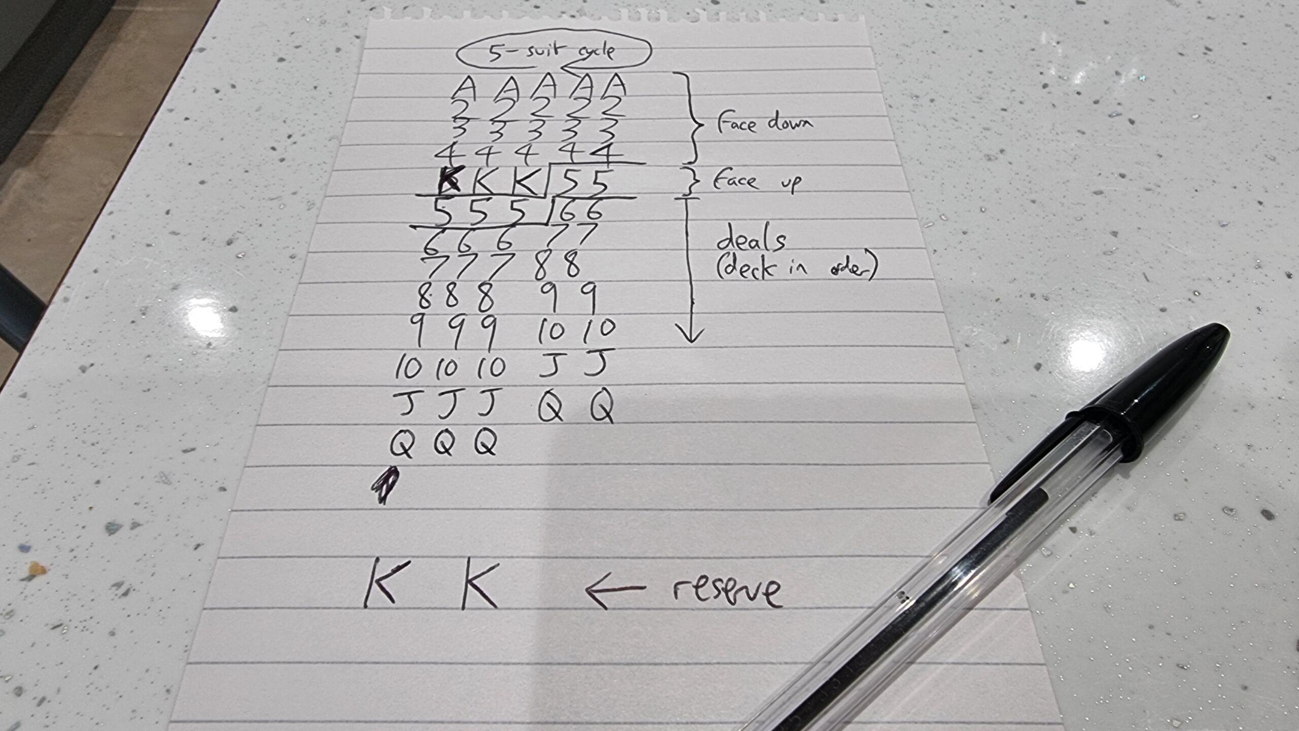 7 I’ve not thought deeply about it, but determining if a given deck of cards will result in a winnable game probably lies somewhere between the travelling salesman and the halting problem, in terms of complexity, right? And probably not something a right-thinking person would ask their desktop computer to do for fun!