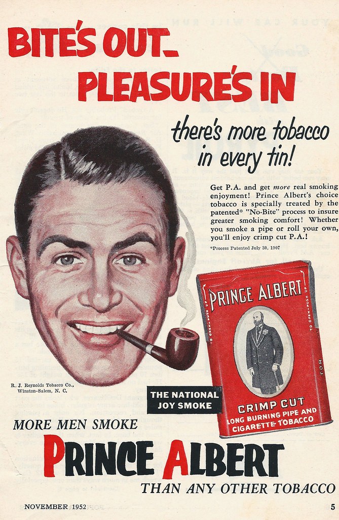The final example I’ve got died out as a joke as a result of changing brand identities, more cost-effective packaging materials, and the gradual decline of tobacco smoking. But for a long while, while Prince Albert Pipe Tobacco was still sold in larger quantities as it always had been, in a can, a popular prank perpetrated by radio stations that went in for such things was to call a tobacconist and ask, “Have you got Prince Albert in a can?”. The tobacconist would invariably answer in the affirmative, at which point the prankster would response “Well let him out then!” This joke may well predate the “Is your refrigerator running?” prank call that might be more-familiar to today’s audiences.