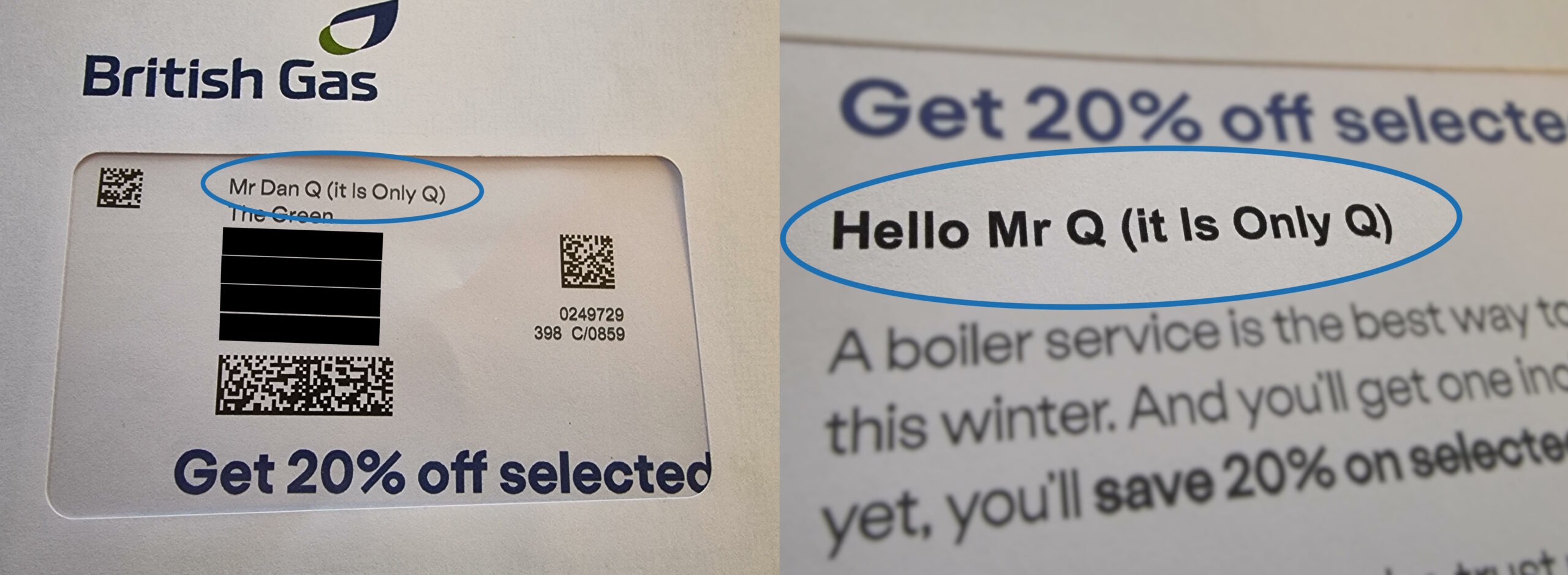 The programmers at British Gas are among the many who don’t believe that a surname can be only a single character, and their customer service agents
