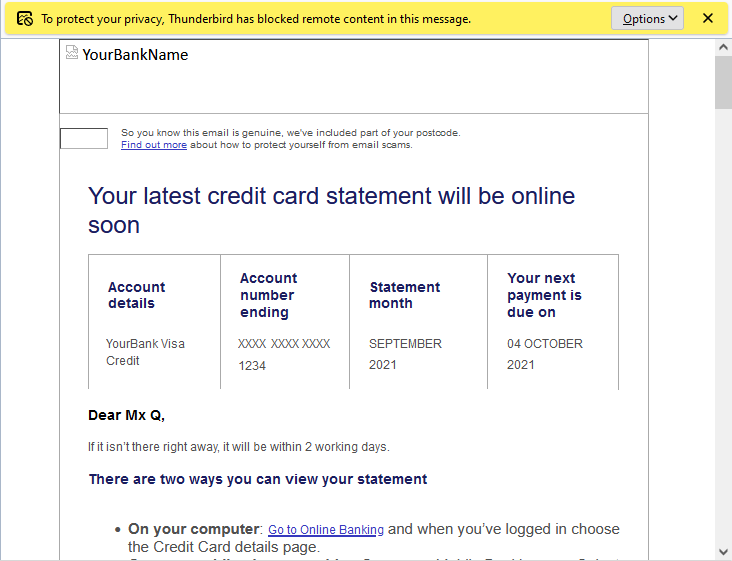 Needless to say, I had words with my credit card provider. Paperless billing is useful to almost everybody but it’s incredibly useful for blind and partially-sighted users (who are also the ones least-likely to have images loading in the first place, for obvious reasons) because your computer can read your communication to you which is much more-convenient than a letter. Imagine how annoyed you’d be if your bank wrote you a letter (which you couldn’t read but had to get somebody else to read to you) to tell you that because you don’t look at the images in their emails they’re not going to send them to you any more?