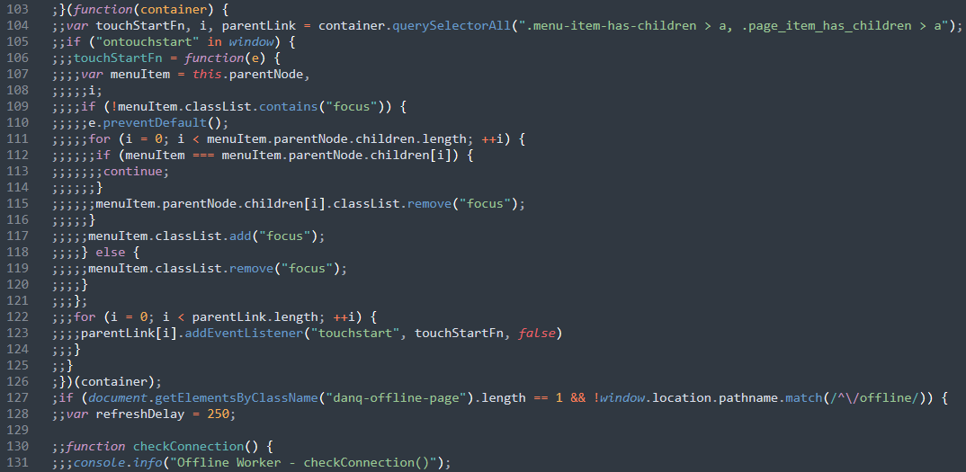 I discover another interesting fact: the developer of TheseusJS used a really random mixture of tabs and spaces for indentation, sometimes in the same line! It looks…