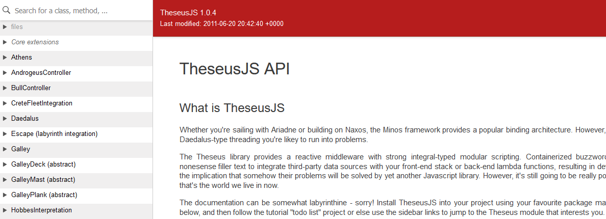 copious documentation in comments in the file itself, and for some reason it doesn’t even compress well. When you use TheseusJS on a website it takes a painfully long time for