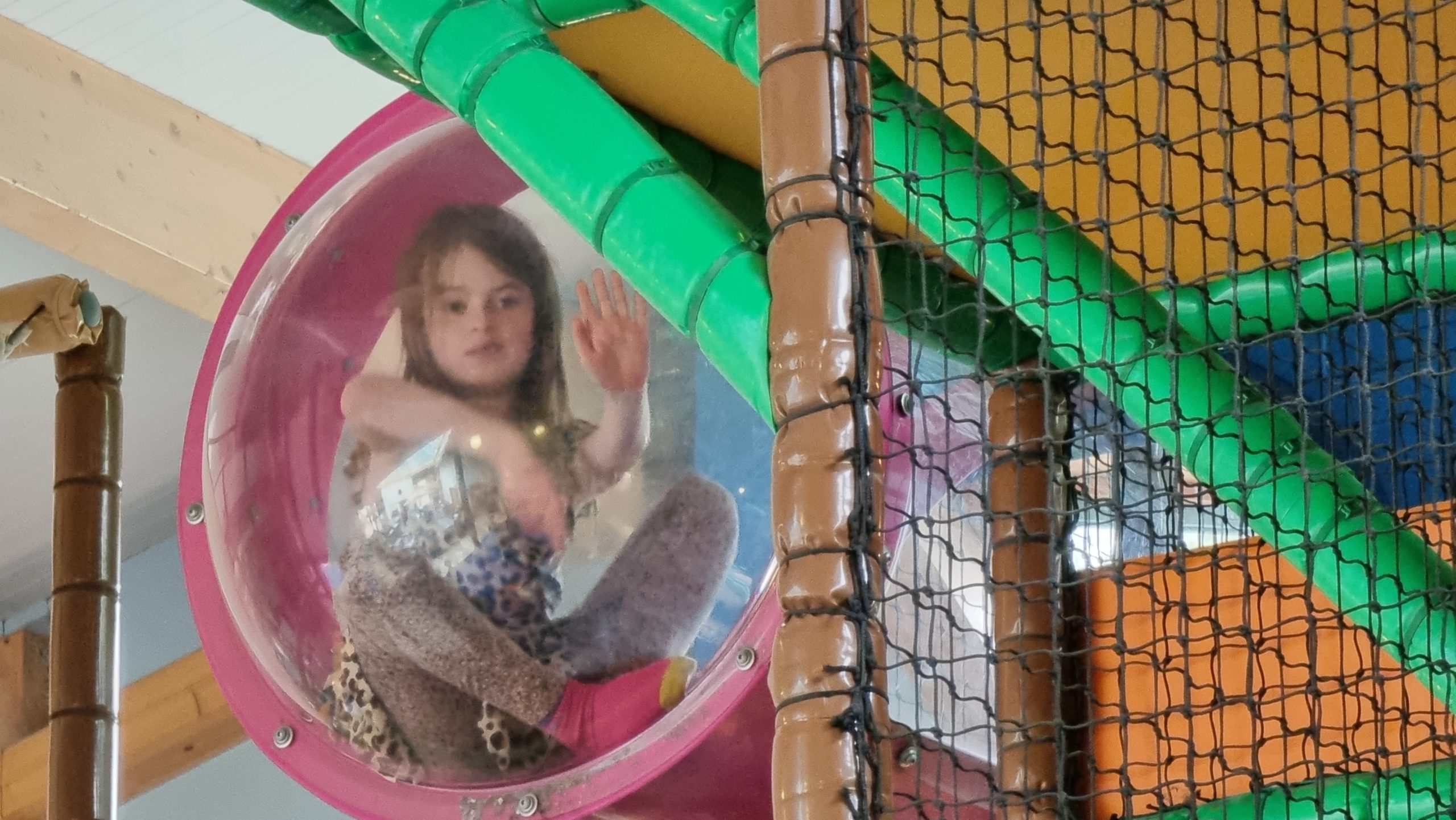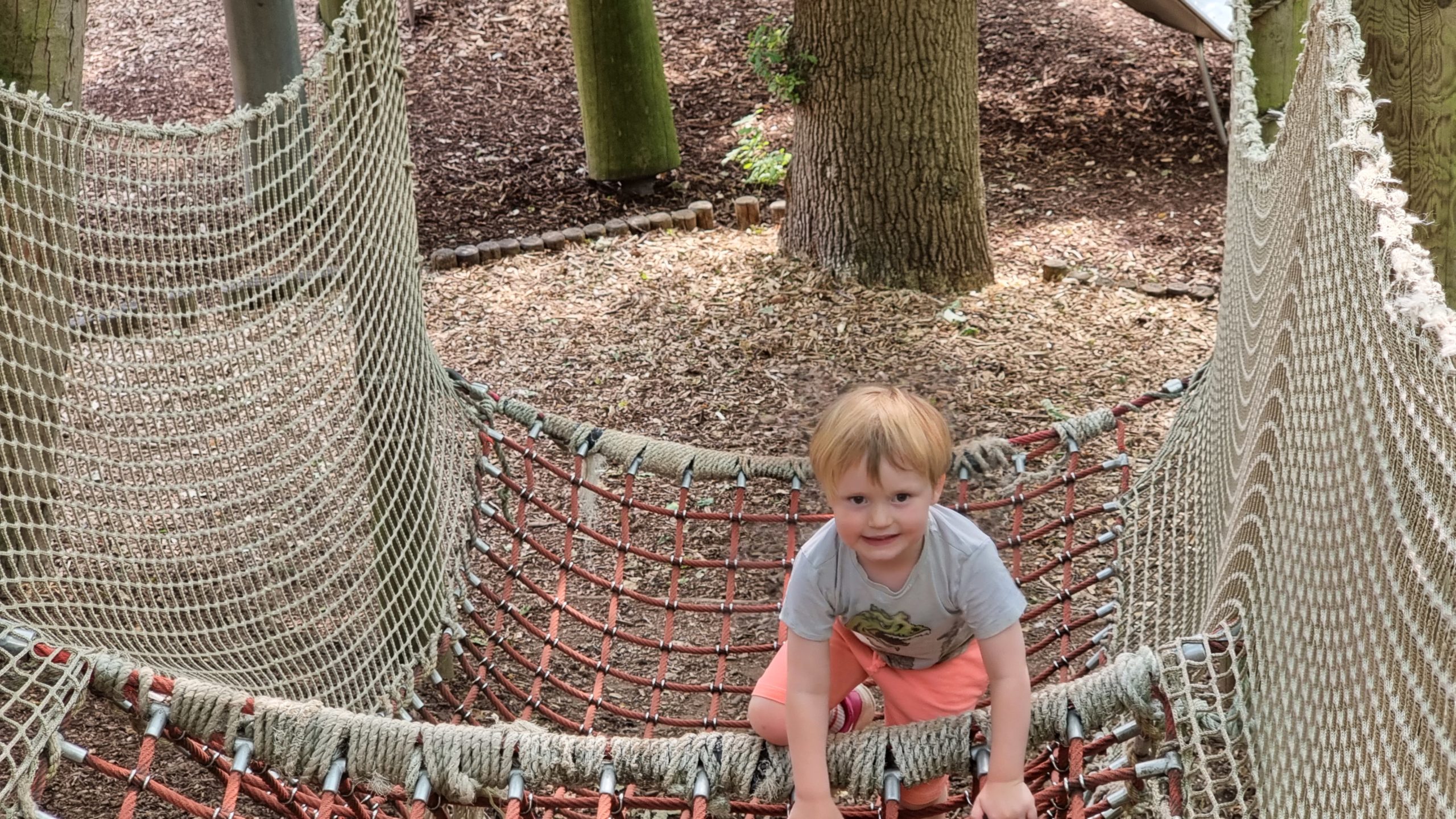 “I’m being a bat.” She hung there for some time, greeting other children as they entered her “cave”.