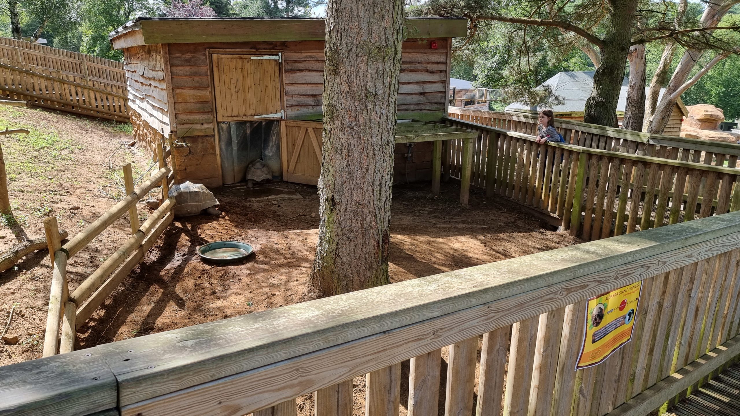 That giant tortoise was determined that it could open the (latched) gate if only it pushed hard enough.