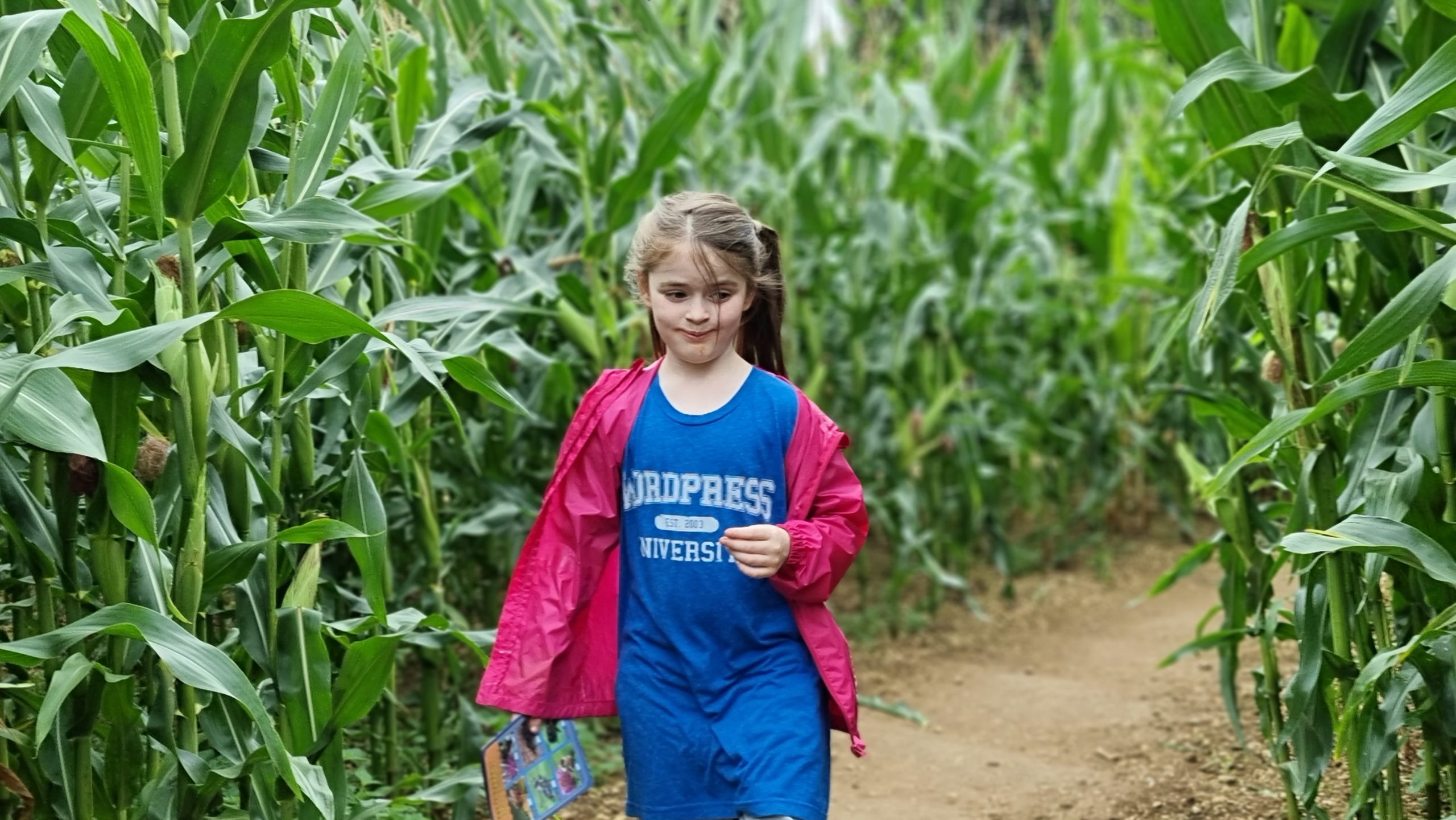 I specifically said, “Look like you’re NOT completely lost in this maize maze,” I swear.