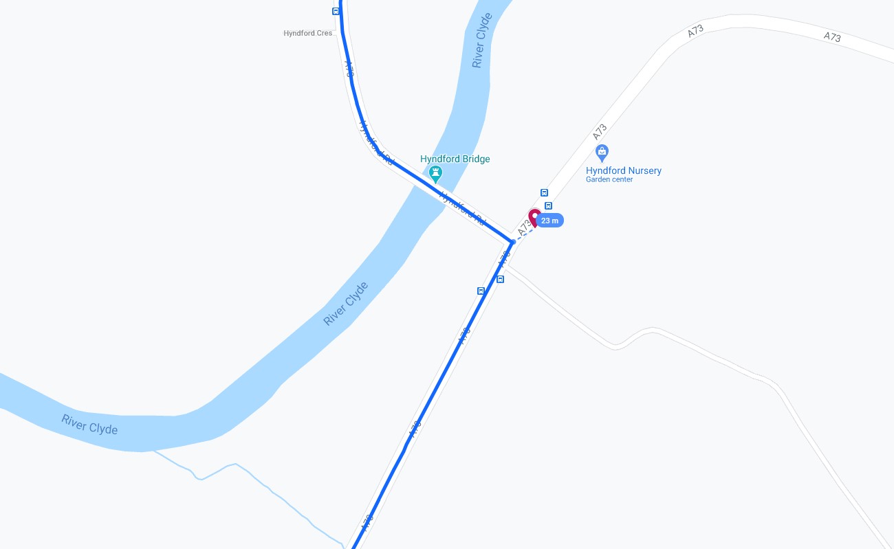 We exited Lanark via the Hyndford Bridge… which is – according to the map – tantalisingly-close to the 2015-08-22 55 -3 hashpoint: only about 23 metres away!