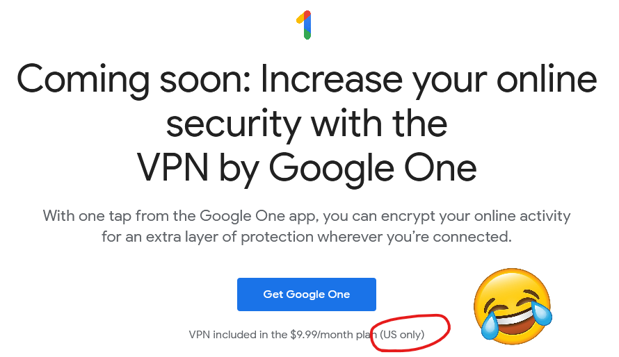 So yeah, it turns out that Google are launching a VPN service. I just checked, and it’s not available to me anyway because it’s US-only (apparently nobody explained to Google the irony of having a VPN service that’s geofenced), but that’s pretty academic because I wasn’t going to touch it with a barge pole in the first place.
