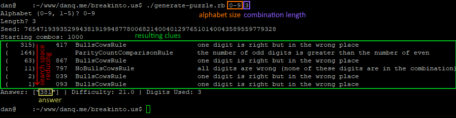 I expanded my generator to go beyond simple bulls-or-cows clues: it’s also capable of generating clues that make reference to the balance of odd and even digits (in a numeric lock), the