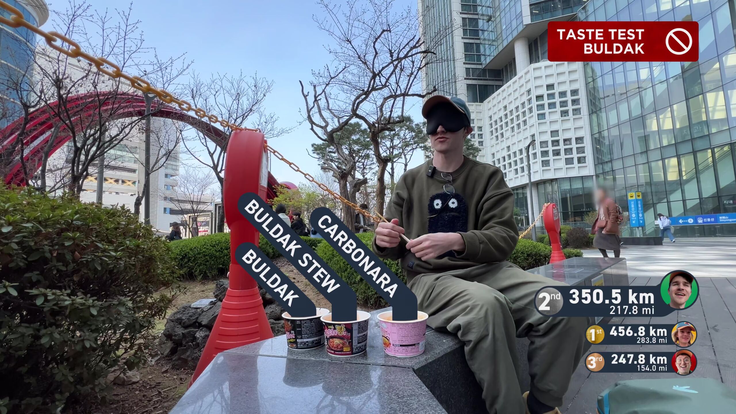 The Taste Test Buldak roadblock required the Snaker player to do a blindfolded identification of three different noodle flavours.