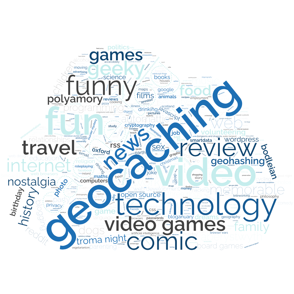 I’ve been on a bit of a blogging kick these last few years, though. Last year I wrote a massive 436 posts, although that admittedly includes PESOS‘d checkins from geocaching and geohashing expeditions. I’m a fan of