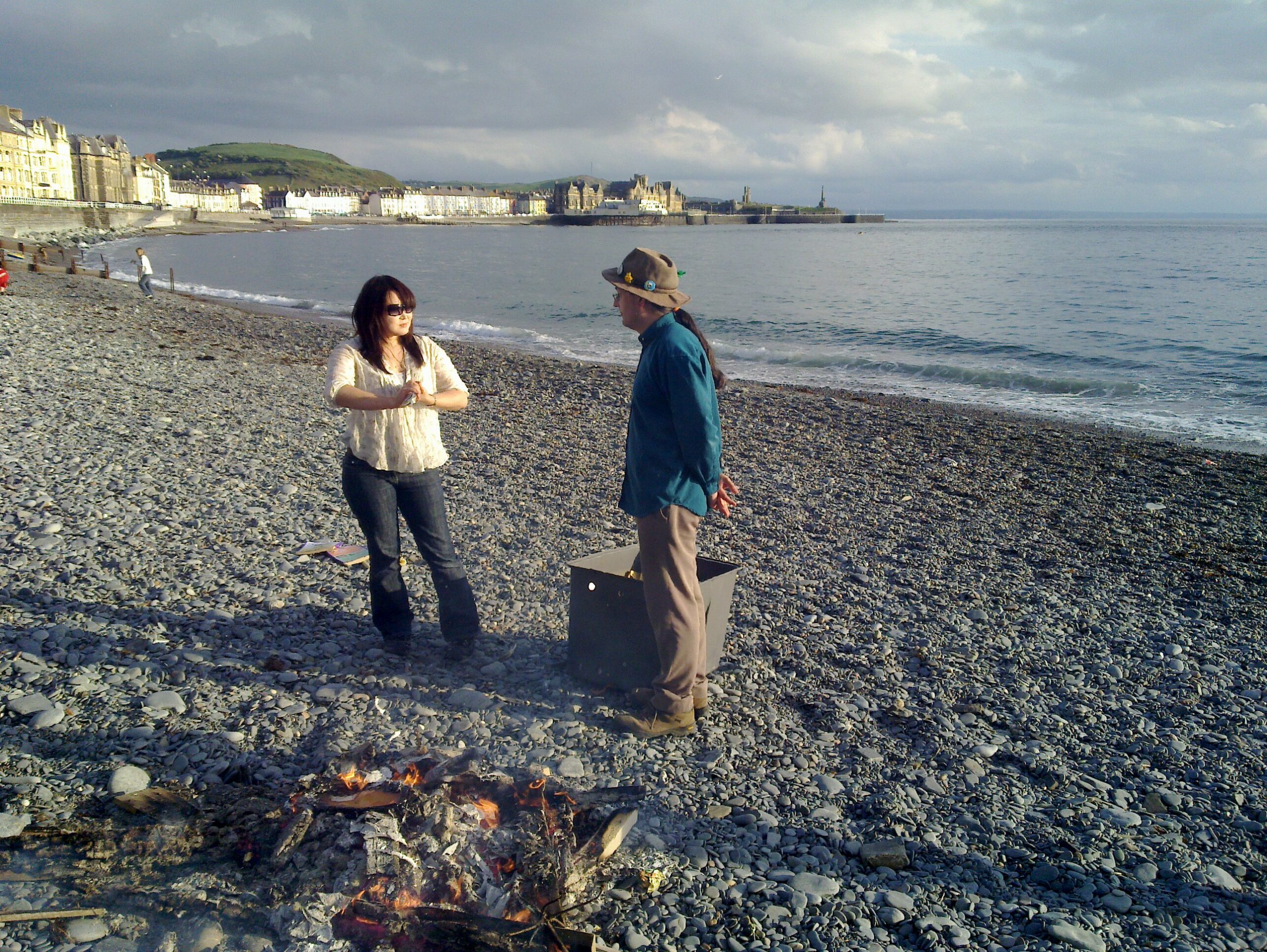 It wasn’t all work, though: we also all took a trip up to nearby Ynyslas, a little way North of Aberystwyth, for a barbeque on the sweeping sand dunes there. As my blog post for that weekend reveals, this involved a fantastic prank in which Claire and I “hid” Jimmy by burying him under the sand, covering his face with an upturned cardboard box, and then frightening the shit out of Gareth when he – having been told that Jimmy hadn’t come – lifted the box to find Jimmy’s disembodied head staring back at him.