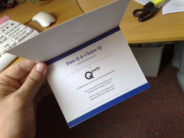 Because I’ve been with Claire for five and a bit years, and (at the time of QParty) I’d been with Ruth for less than a month. Is that a good enough reason? Part of QParty was