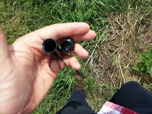 Found without difficulty, because the gods of GPS were shining upon me today and I was directed right to the spot. However… there was no log in there: the entire cache was empty!