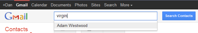 You just can’t rely on GMail’s “contacts” search any more. Look what it came up with: