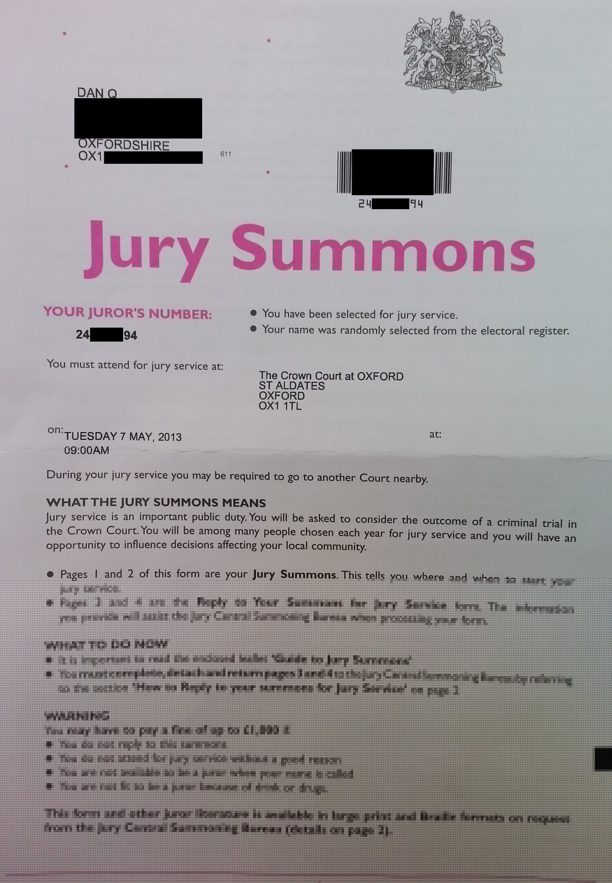 get out of it?”); others still have been curious (“you must tell us all about it!”). Personally, I’m pretty keen: it seems to me that jury duty’s an important civic duty,