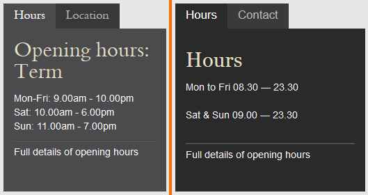 Tabs are a great way to show opening hours. Everybody knows that. And this is obviously just the a popular font.