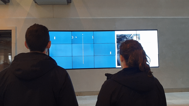 Gamepad API (which is awesome, by the way). If there’s only one player, a (tough! – only three people managed to beat it over the course of the day!) AI plays the other paddle.