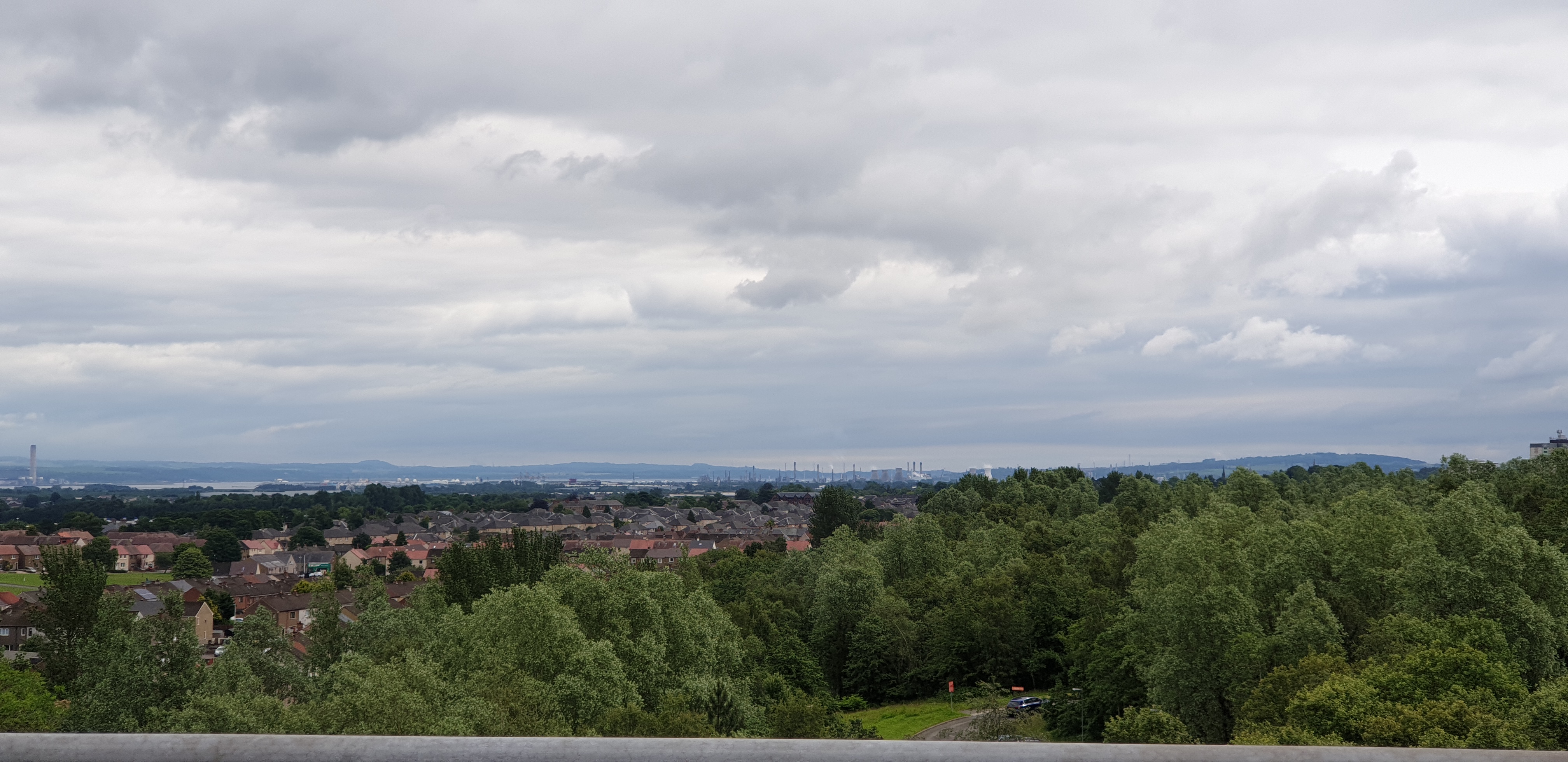 Looking East from the top of the Falkirk Wheel we could make out Grangemouth, the Kelpies, and – in the distance –