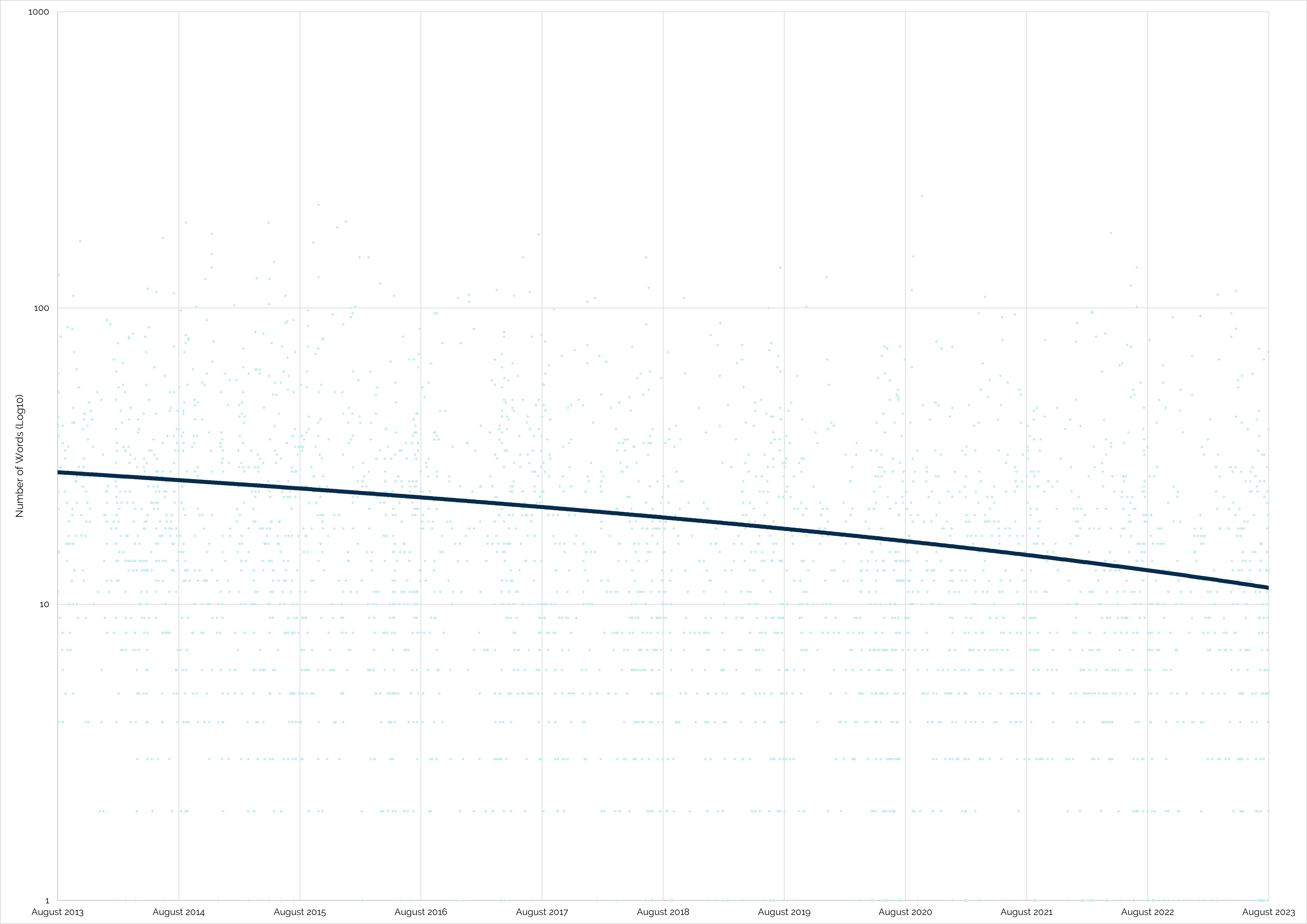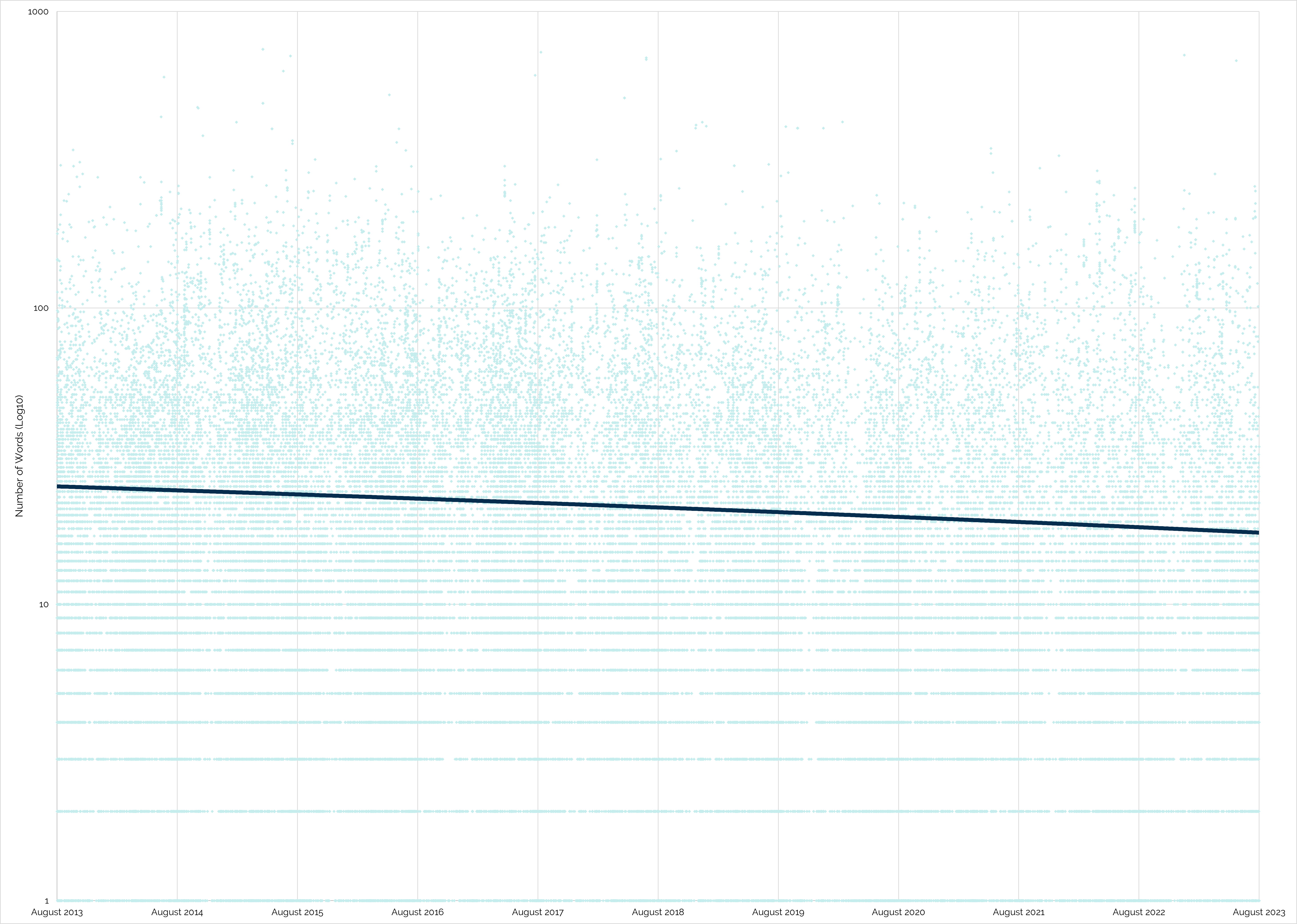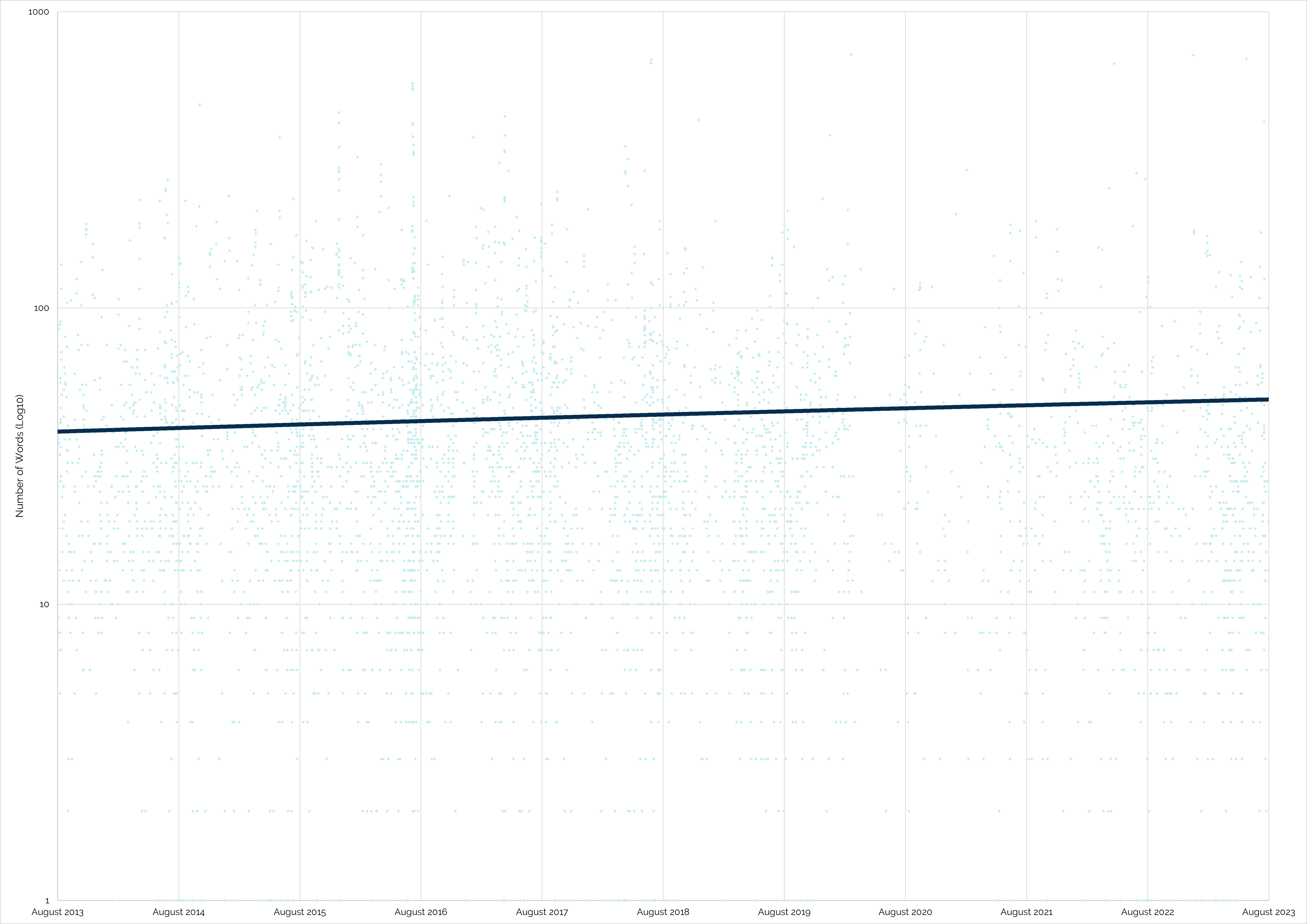 Are these trends a sign of shortening attention spans? Increased use of mobile phones for logging? Use of emoji and acronyms to pack more detail into shorter messages? I don’t know.