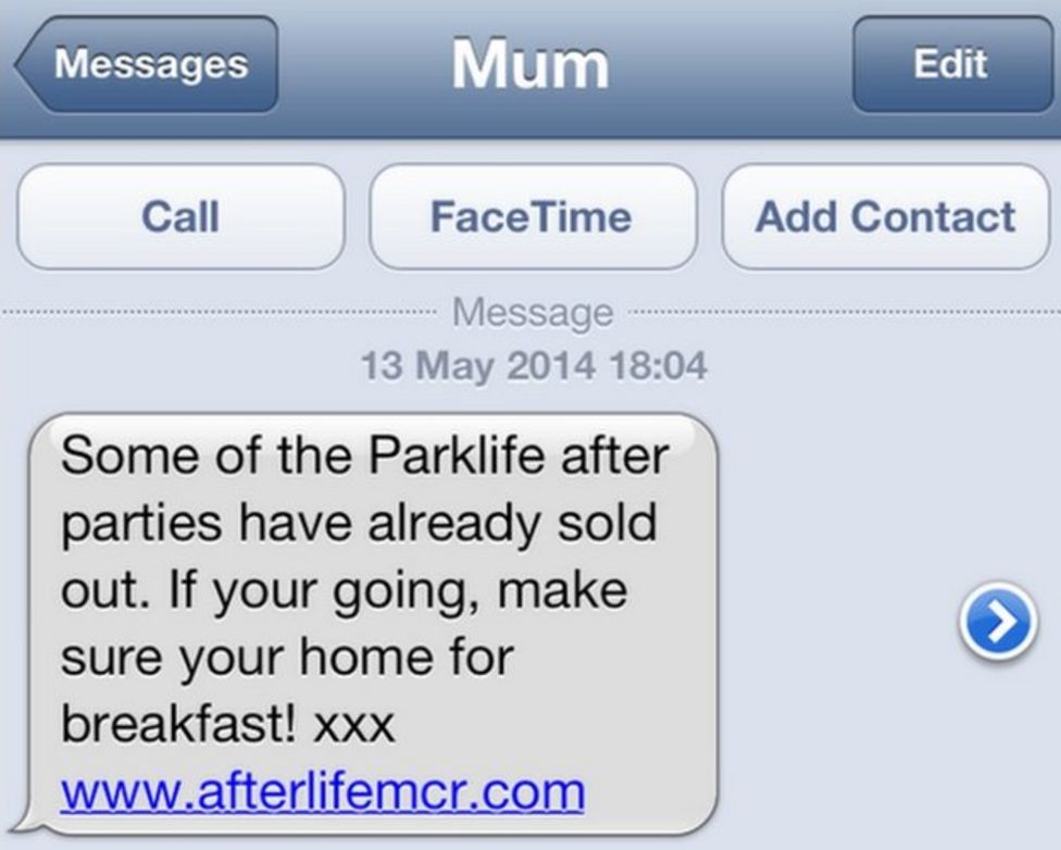 Organisers of Parklife Festival were fined £70K for causing distress by texting participants from “Mum” in 2014.