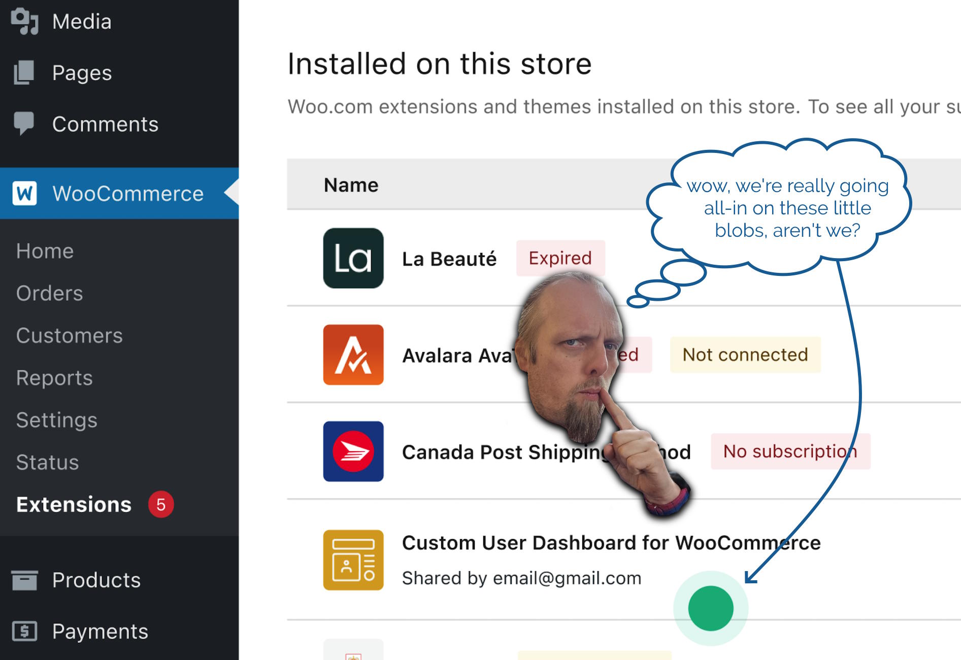 Owners of online shops powered by WooCommerce can optionally “connect” their stores back to Woo.com. This enables them to manage their subscriptions to any extensions they use to enhance their store1. They can also browse a marketplace of additional extensions they might like to consider, which is somewhat-tailored to them based on e.g. their geographical location2